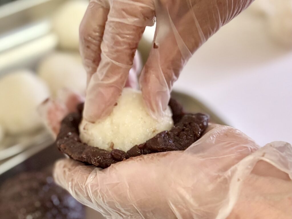 ふっくらと炊いた小豆のあんこと、やわらかいもち米の組み合わせは、どこか懐かしく、心がほどける味わいです。