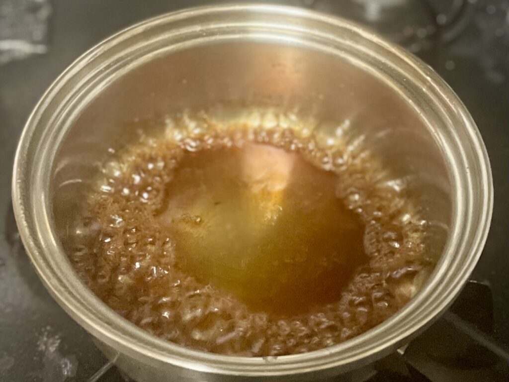 残ったたれを小鍋に移し、弱火で軽く煮詰めて照りを出す。