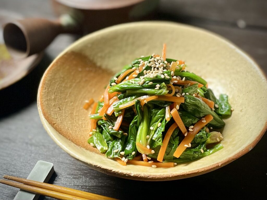 ほうれん草とにんじんの自然な甘さに、甘酢のほどよい酸味。重たい料理が続く冬の日にも、するりと食べられる一品です。