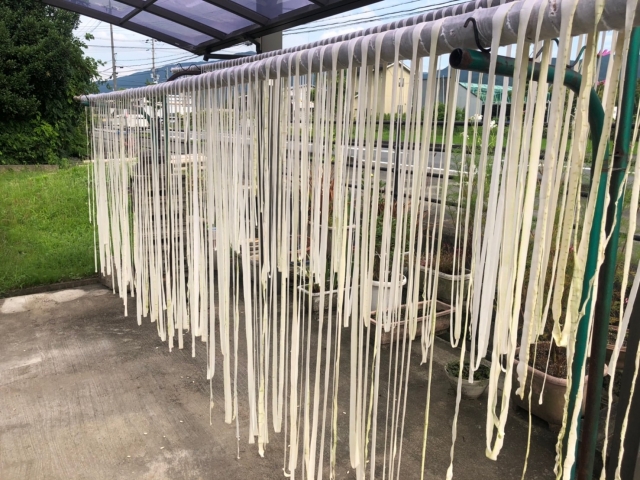 原料となる夕顔の収穫は夏(7〜8月)。その後、果肉をむいて天日干しし、乾物として出荷されます。