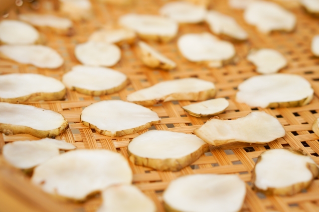 薄切りにして天日干しすると、旨味が凝縮した乾燥菊芋に。
