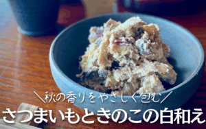 ほっくり甘いさつまいもと香ばしいきのこを、豆腐の衣で包んだ秋の副菜。和のまろやかさと季節の香りが楽しめます。