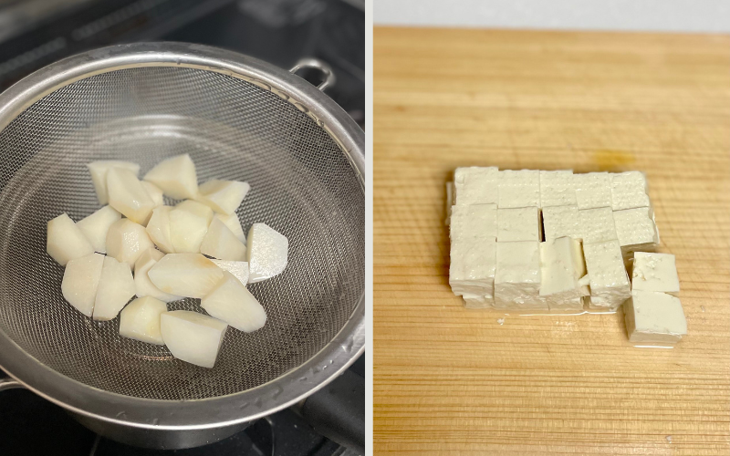 豆腐は1〜1.5cm角に切る。