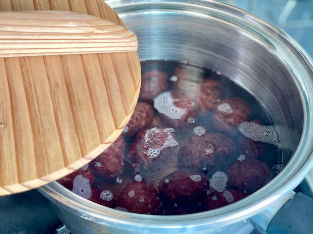 重曹水は煮るたびに必ず新しく作り直すことで、渋みや雑味が残りにくくなります。