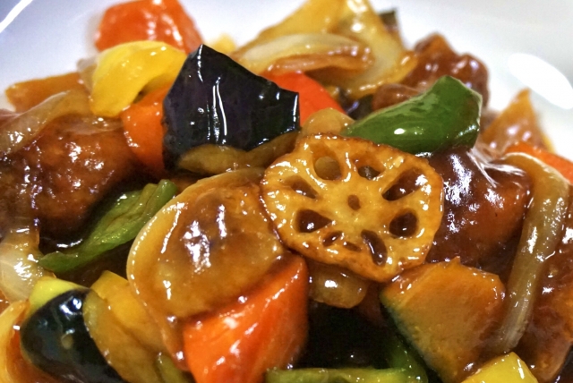 揚げずに焼いて作る、手軽な黒酢酢豚。