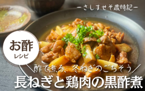 こんがり焼いた鶏肉と甘みの出たねぎを、黒酢でさっと煮からめた一品。