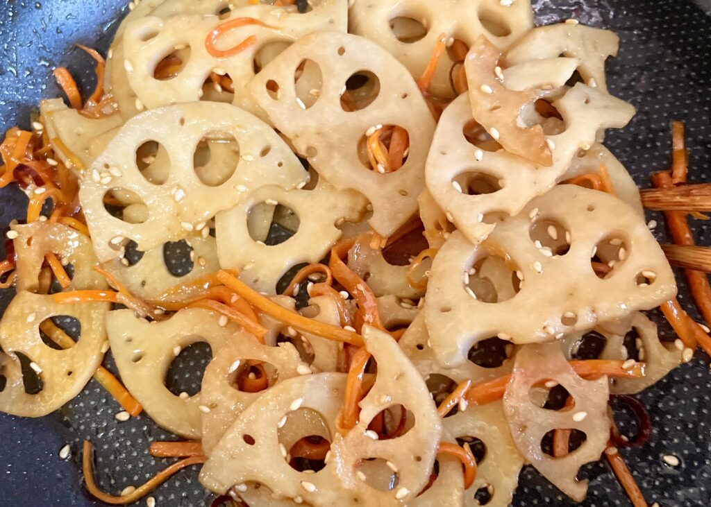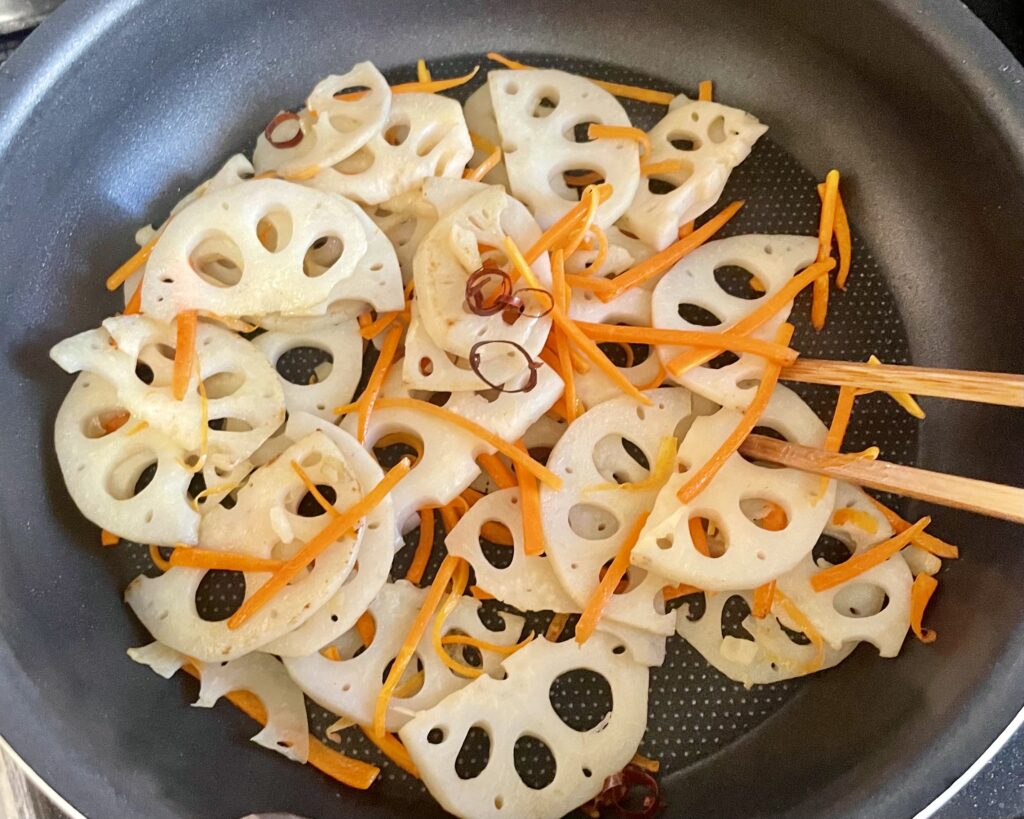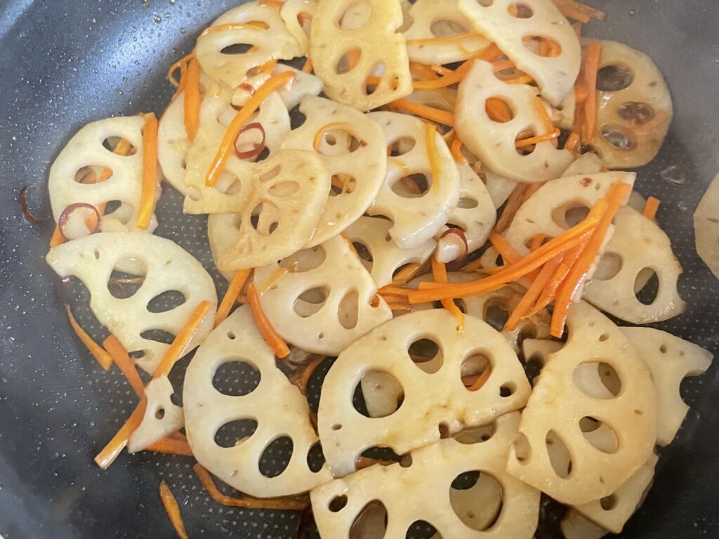 れんこんのシャキッとした歯ざわりに、にんじんのやさしい甘み。