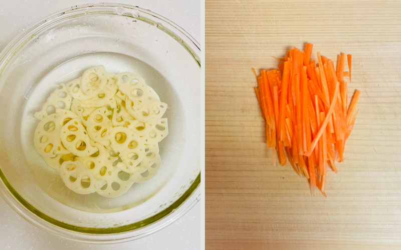 ◆ れんこんは薄め×水さらしでシャキッと