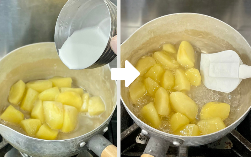 火を通しすぎると崩れてしまうため、「やわらかいけれど形は残っている」状態で止めましょう。