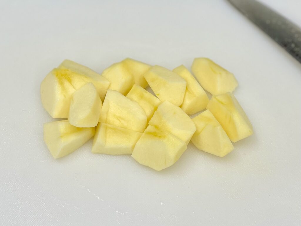 今回使っている「ふじ」は甘みが強く、果肉もやわらかくなりやすい品種です。