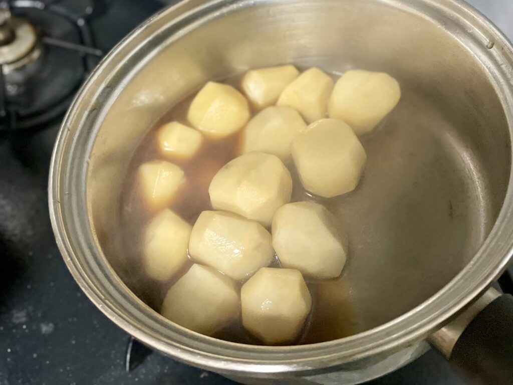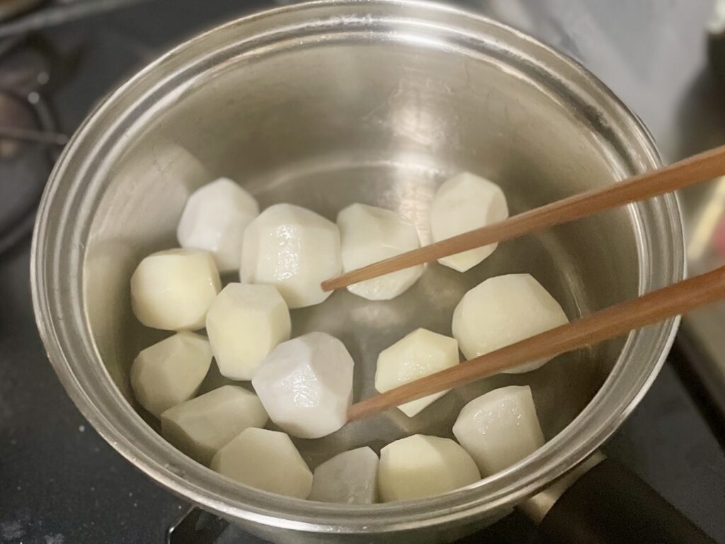 目指すのは、里芋のやわらかさを残しつつ、つややかに照りの出た上品な仕上がり♪