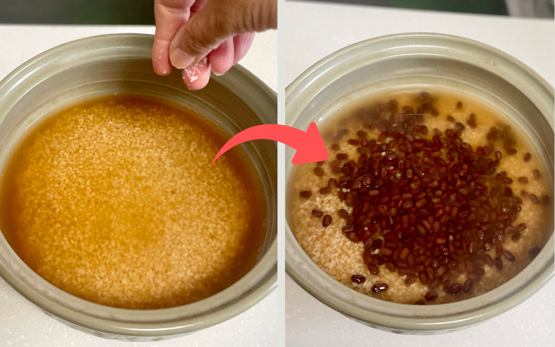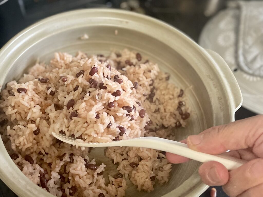 土鍋でおいしく赤飯を炊くための鍵は、浸水と蒸らしです。