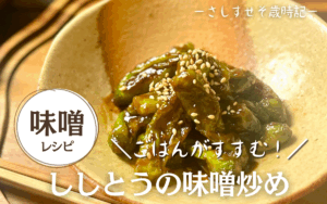 仕上げに七味をひと振りすれば、ピリッと辛味がアクセントに。甘辛さに引き締まりが加わり、お酒のお供にもぴったりです。 - ししとう+パプリカ