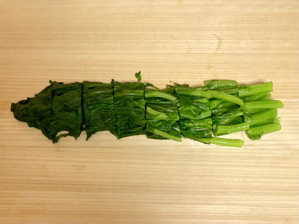 冷えたらやさしく水気をしぼり、4〜5cmに切る。