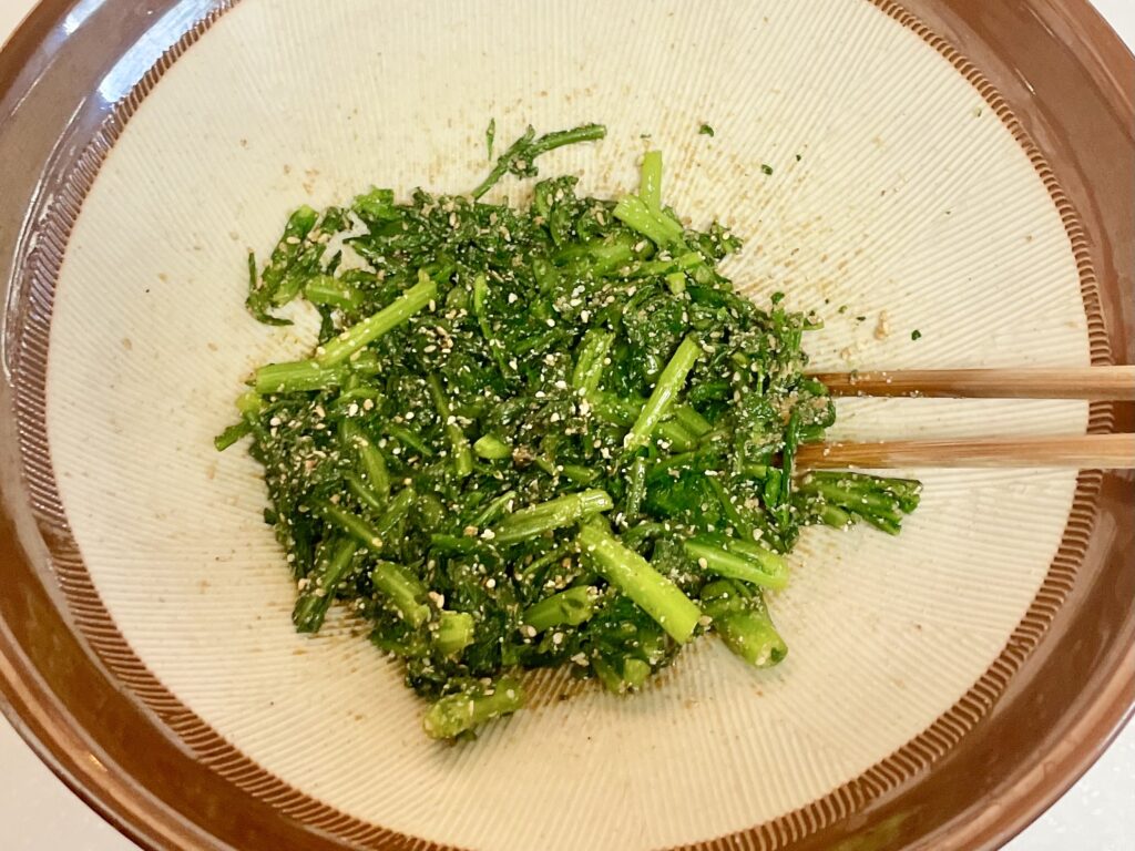 手間もかからず、簡単にできる料理ですが、春菊ならではのほろ苦さと、香ばしいごまのコクが絶品の和食定番の一品です。
