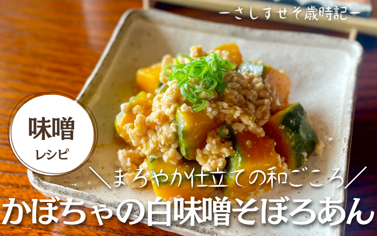 秋から冬にかけて甘みを増すかぼちゃに、やさしい白味噌のそぼろあんを合わせた一品です。 まろやかなコク…