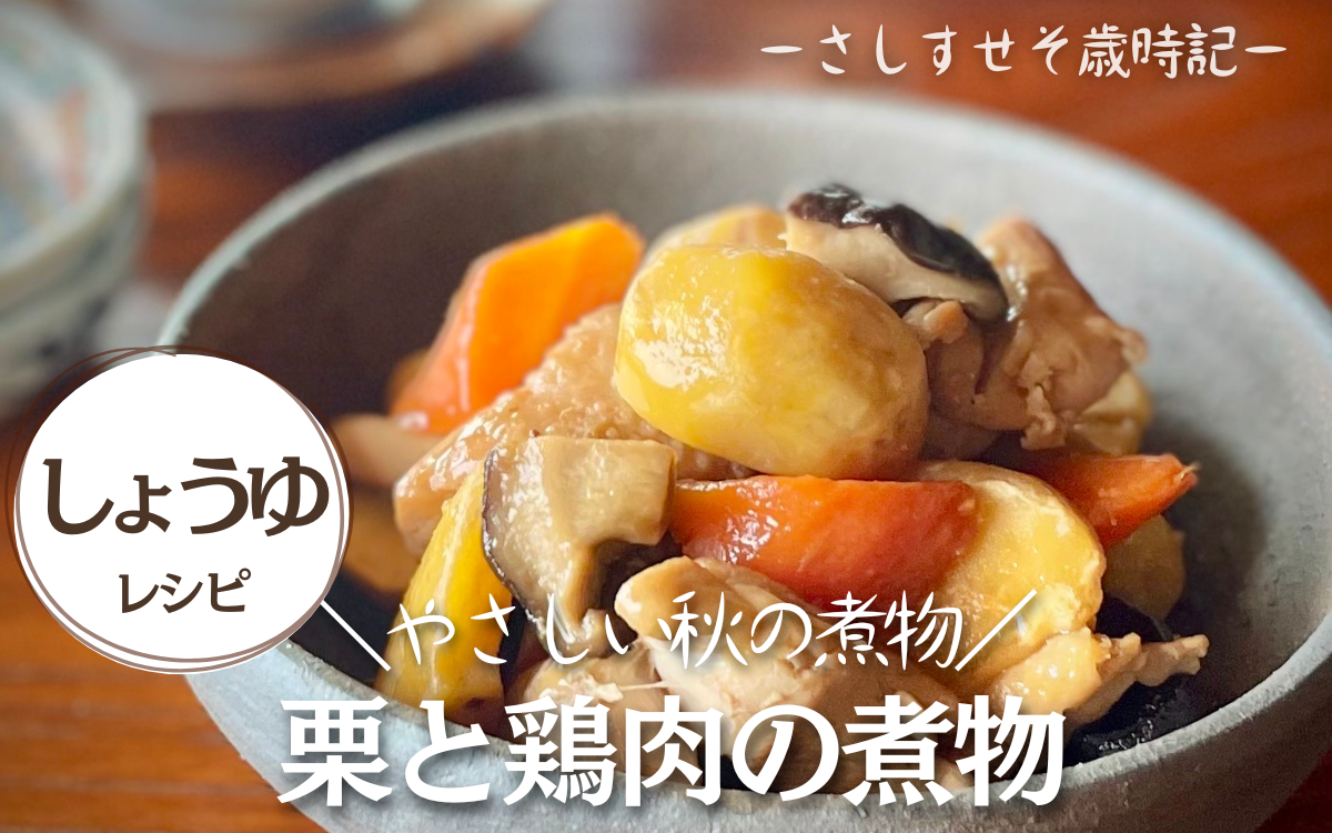 ほくほくの栗に、旨みたっぷりの鶏もも肉。そこに香り豊かな生椎茸と彩りの人参を加えて、秋らしい煮物に…