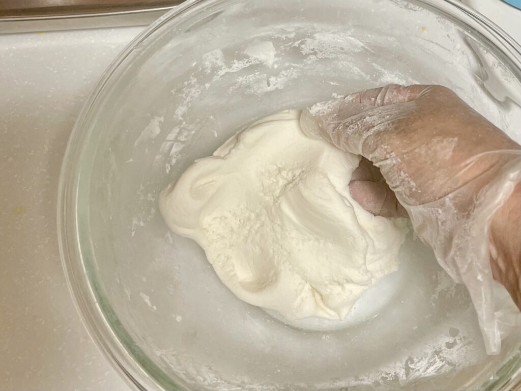 白玉粉に水を少しずつ加え、耳たぶ程度のやわらかさになるまでこねる。