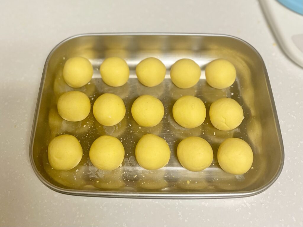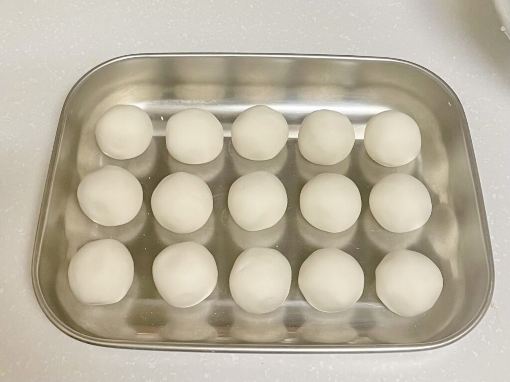 15等分して球に丸める。(お好みの大きさに丸める場合は、秤を使って同じ大きさに)