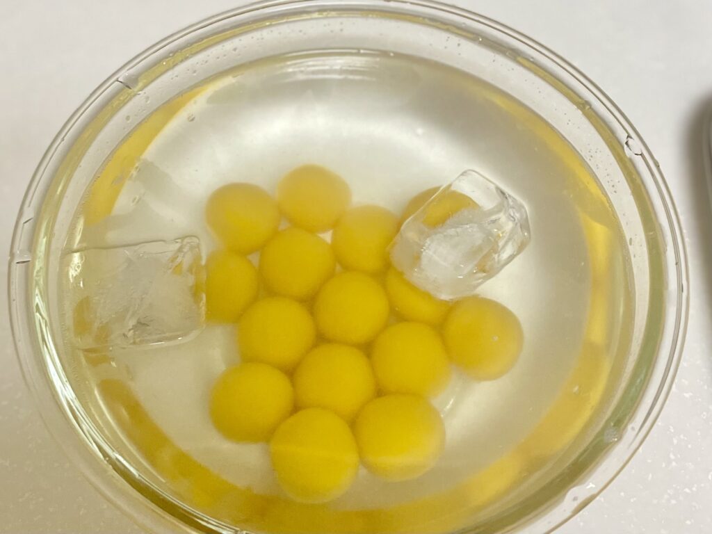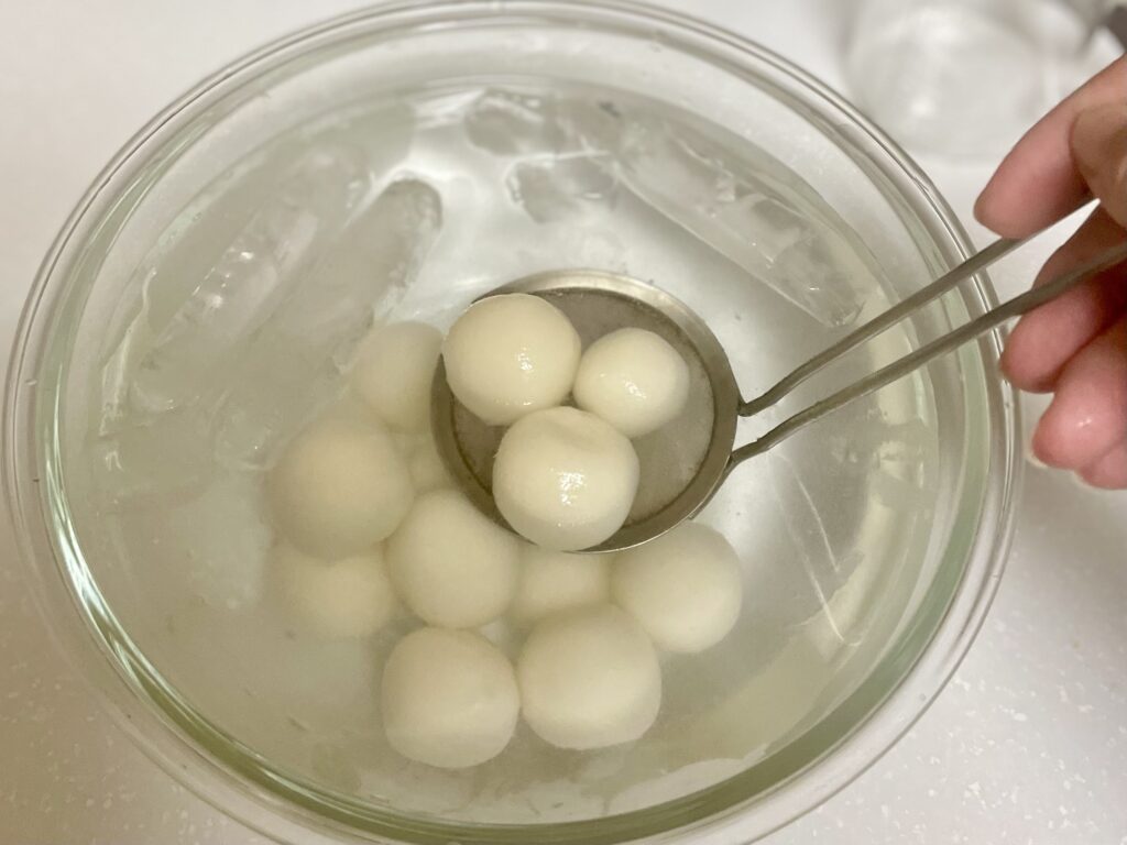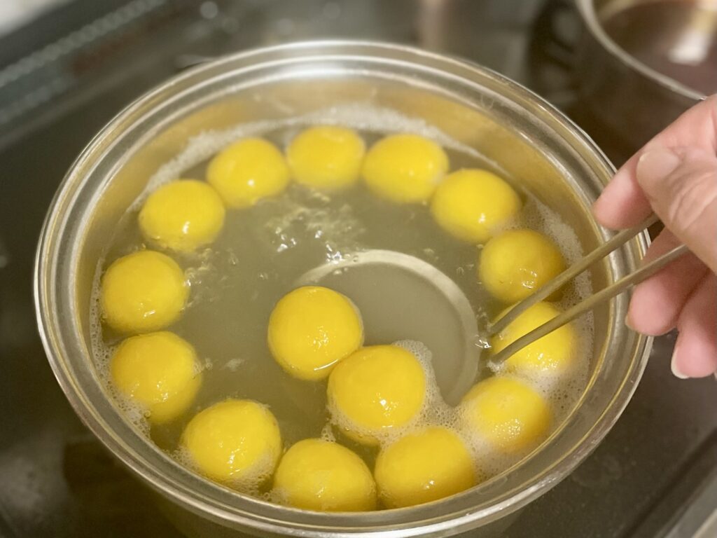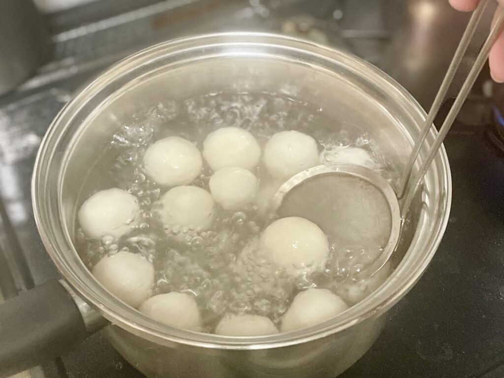 沸騰したお湯に入れ、浮いてきたらさらに2分ゆでる。