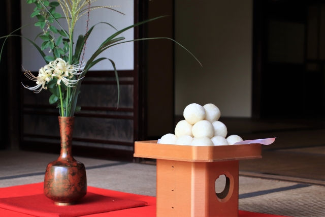 月の形を模した団子を供えることで、収穫の感謝と家庭円満の祈りを表します。