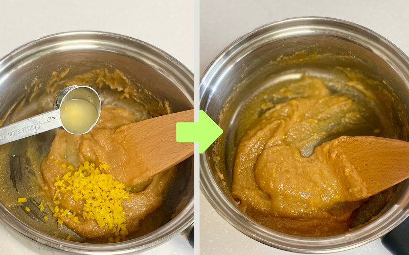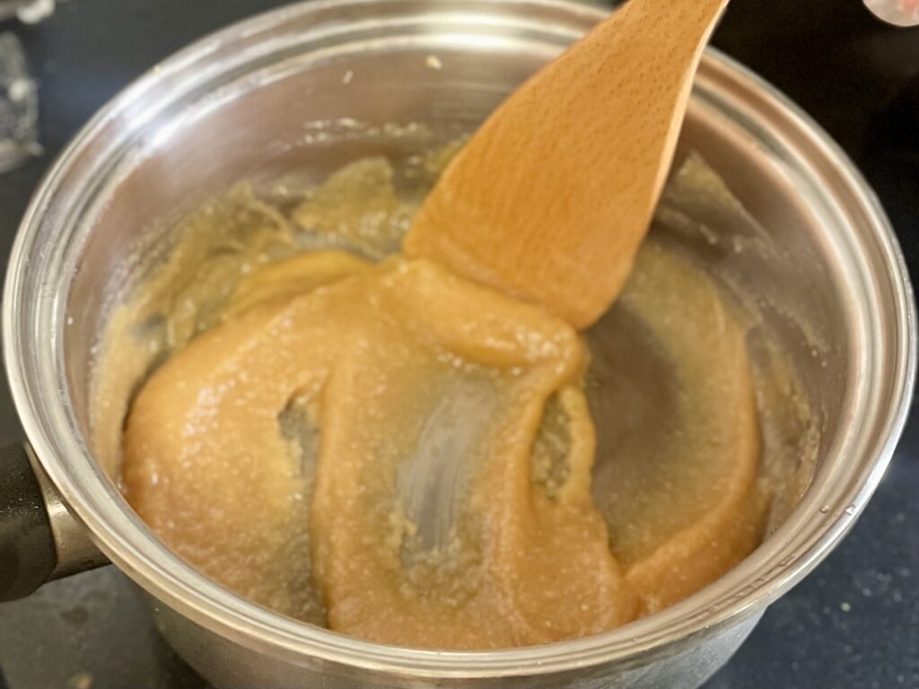 木べらで練るように混ぜ、なめらかになったら火を止める。