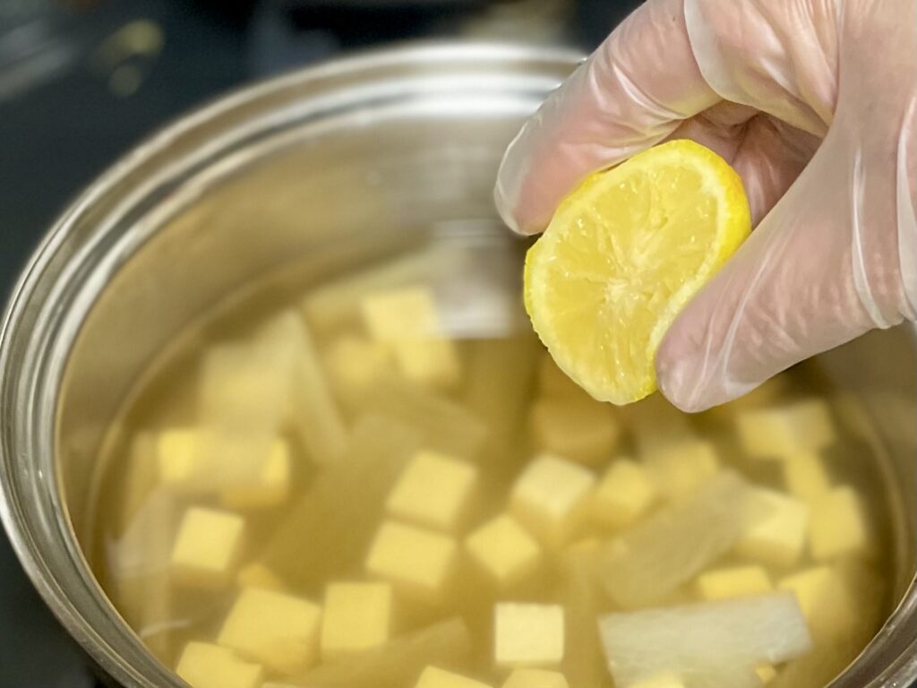 柚子の香り成分はとても繊細で、加熱すると一気に飛んでしまいます。皮も果汁も、火を止めてから加えることで、椀を口に運ぶ瞬間の立ち香がいちばん美しく残ります。
